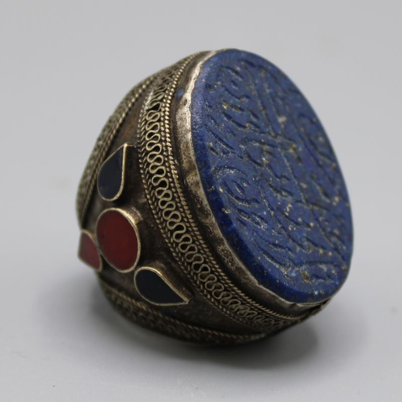 0107-Muslimischer Siegelring mit gravierten Lapislazuli