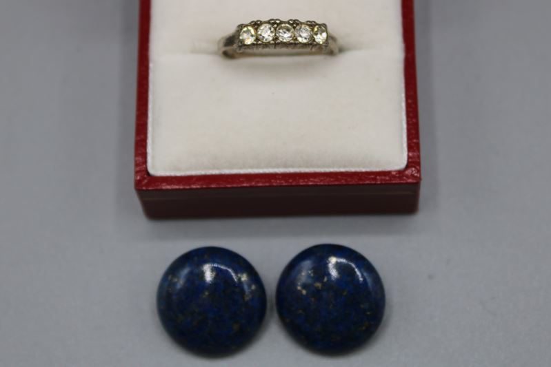 Silberschmuck Konvolut Lapislazuli Ohrclips u. 1 Ring