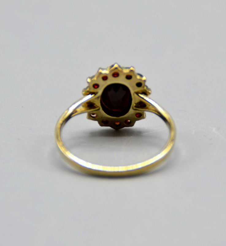 Granatring Trachtenring 333 Gold, Ringkopf ca. 13 x 11 mm, Ø 18 mm, 2,3 g