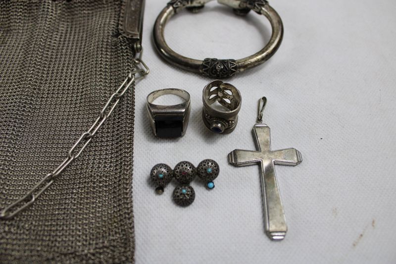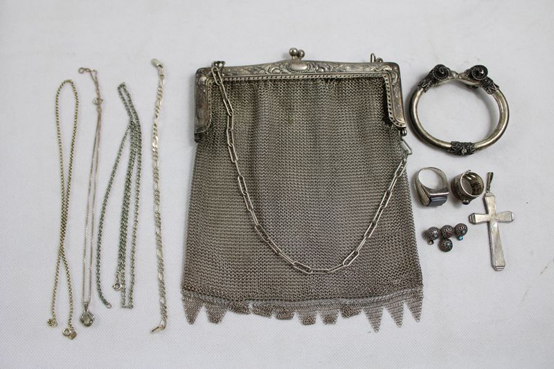 0113-Theatertasche Alpacca Silberschmuck Konvolut