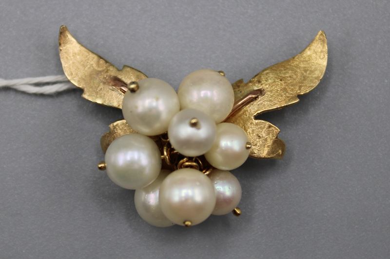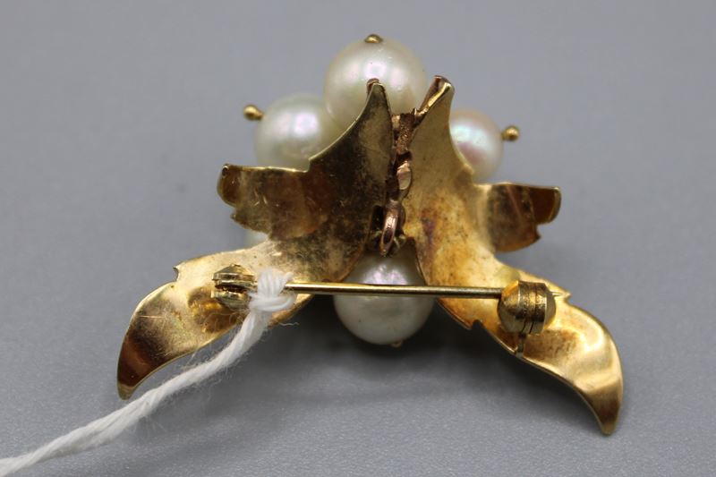0114-Perlen Brosche Gold 585 Wien nach 1922