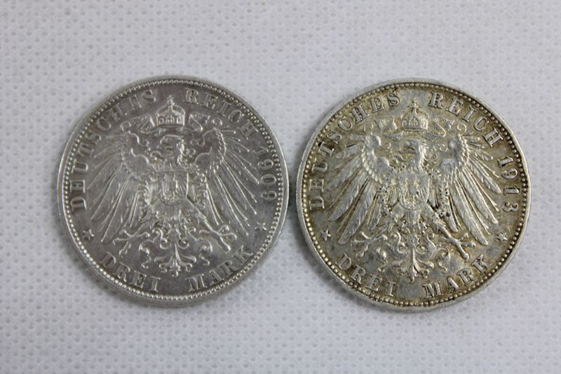 3 Mark 1909 D u. 1913 D Otto Bayern