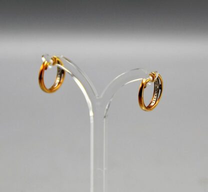 0117-Ohrringe Kreolen 585 Gold mit weißen Glassteinen