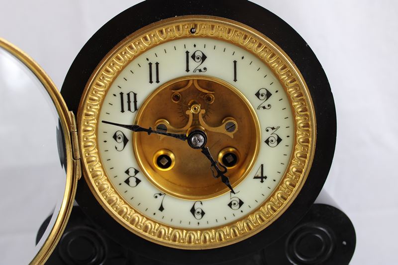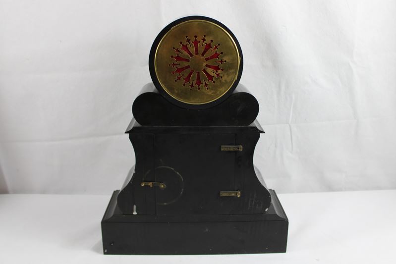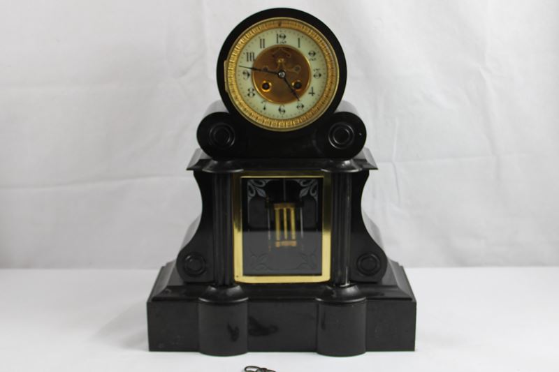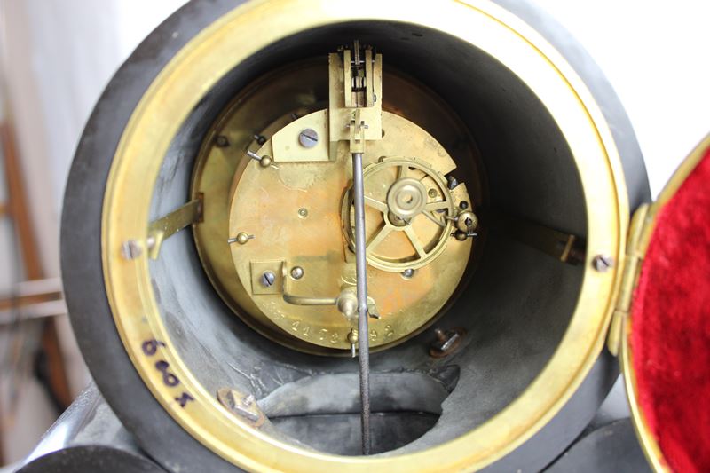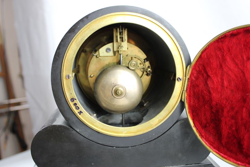 schwarzer Marmor, sichtbare Brocot Hemmung, die Uhr läuft an (Ganggenauigkeit u. Laufdauer nicht geprüft), mit Schlüssel