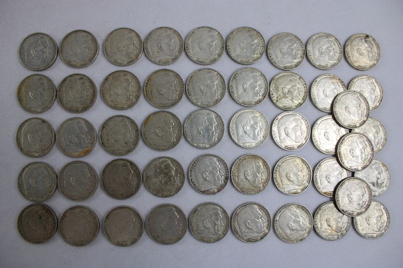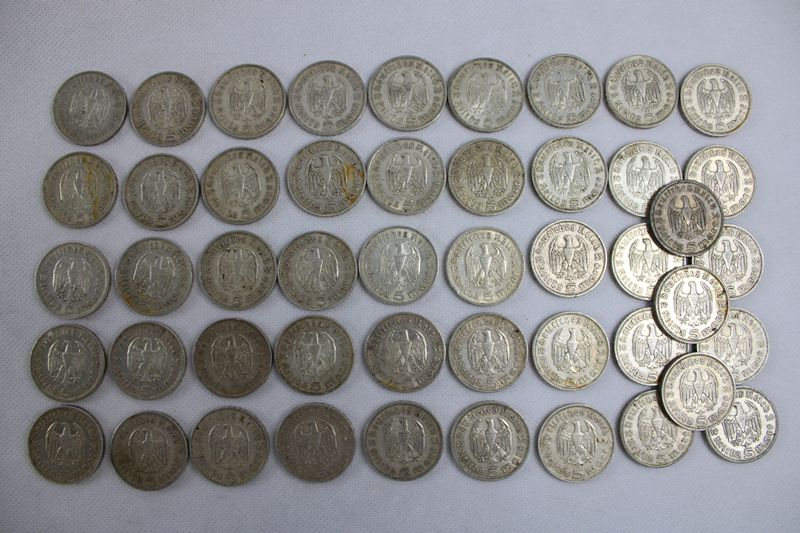 5 Reichsmark Hindenburg ohne Hakenkreuz 1935/36 48 St.