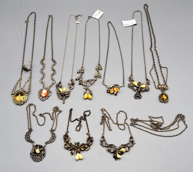 Grandel Collier Jagdschmuck Trachtenschmuck Silber Konvolut 11 St., zus. 229 g