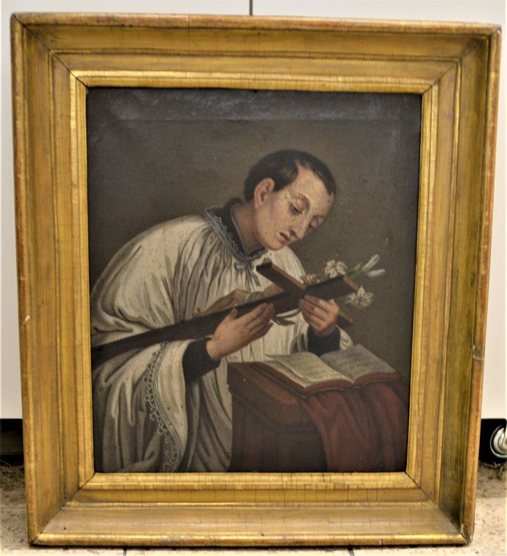 Gemälde Hl. Aloisius 18.Jhdt. orig. Rahmen, Öl auf Leinwand, Farbabplatzer, leichte Beschädigungen am Rahmen, 69 x 61cm ( mit Rahmen )