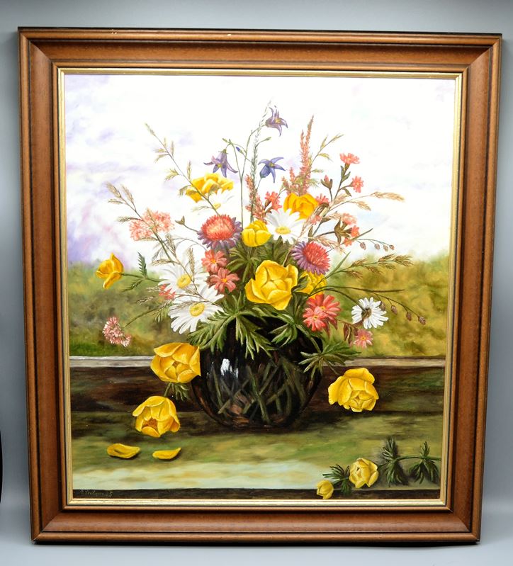 Öl Gemälde Blumen Stillleben, signiert u. datiert "J. Lechner95" ca. 53 x 48 cm (mit Rahmen)