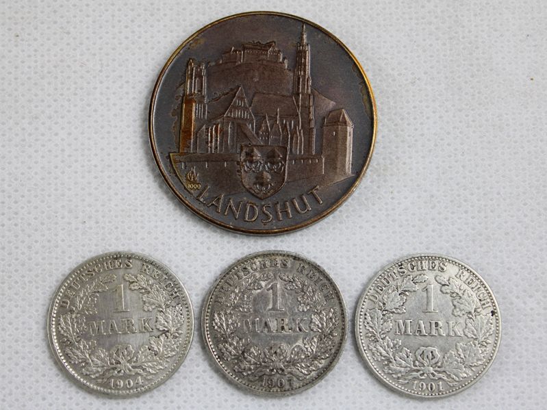 Landshut Medaille 1000er Silber (starke Patina) Ø 38,3 mm ca. 23 g, 3 x 1 Mark Deutsches Reich