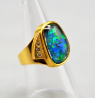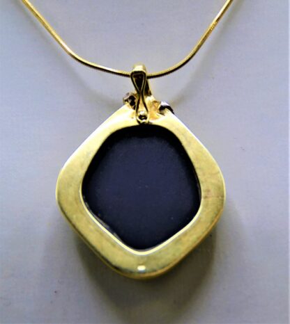 Opal Anhänger 585 Gold mit 750 Gold Schlangenkette, sehr schöner großer schwarzer Opal (Dublette) ca. 3,1 x 2,7 cm, 4 kleine Brillanten, Öse mit Klappverschluss, Anhänger ca. 4,7 x 3,4 cm 21,4 g, Schlangenkette 750 Gold ca. 50 cm 7,2 g