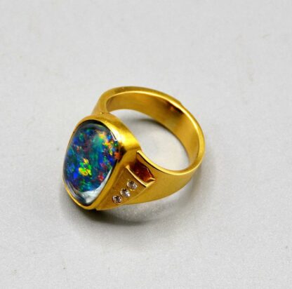 Opal Ring 750 Gold, Opal (Dublette) ca. 17 x 11 mm, 3 kleine Brillanten, Ø 18 mm, 11,3 g