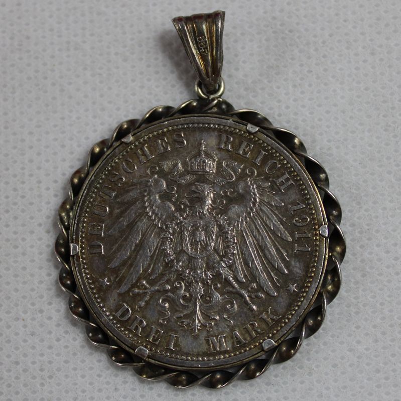 Münzanhänger 3 Mark 1911 F Wilhelm II. u. Charlotte Württemberg