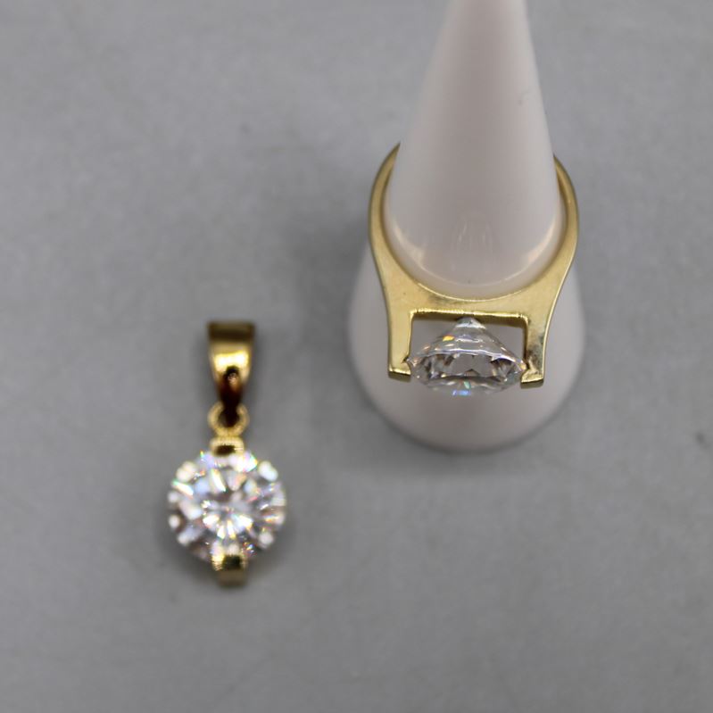 Schmuckset 925 Silber vergoldet, Ring Ø ca. 17 mm und Anhänger, facettierte Glassteine mit schöner Brillanz