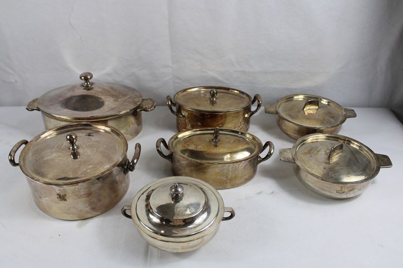 0143-Deckelterrinen versilbert Konvolut 7 St.