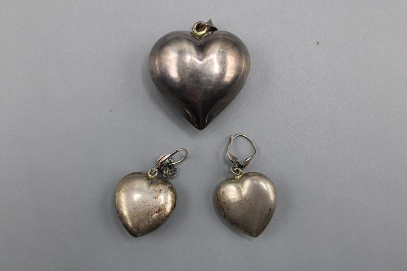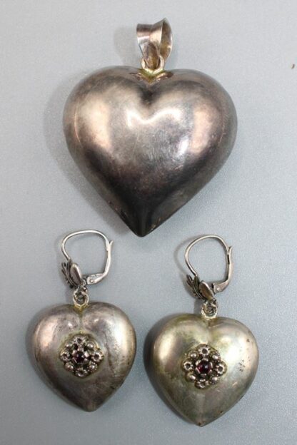 Ohrringe ca. 2,6 x 2,2 cm, Anhänger ca. 3,9 x 3,7 cm, zus. 19 g