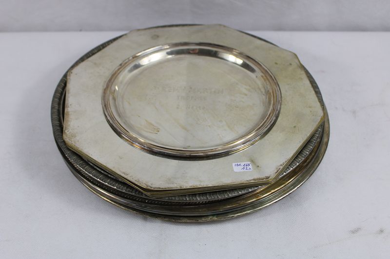 0155-Große Platzteller versilbert verschieden Konvolut 12 St.