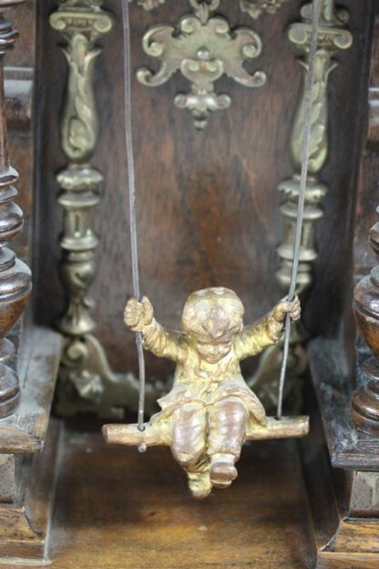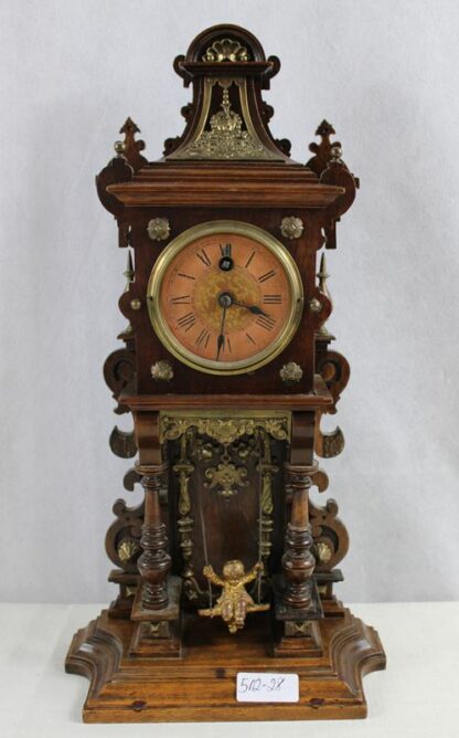 die Uhr läuft an (Ganggenauigkeit u. Laufdauer nicht geprüft), ca. 38,5 cm, ganz oben fehlt wohl ein kleines Ornament