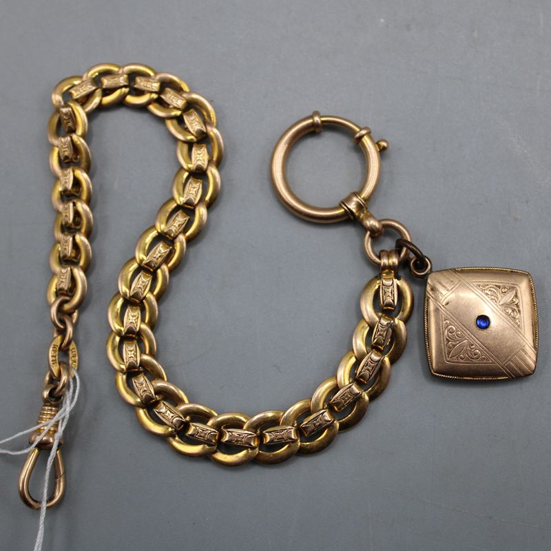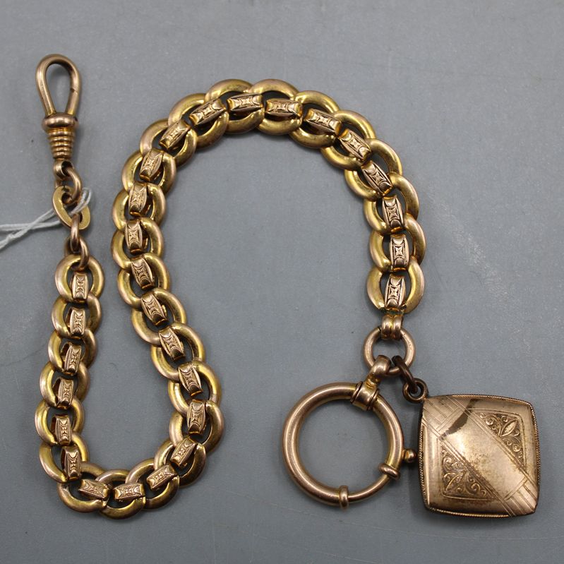 0165-Taschenuhrkette vergoldet mit Anhänger um 1900