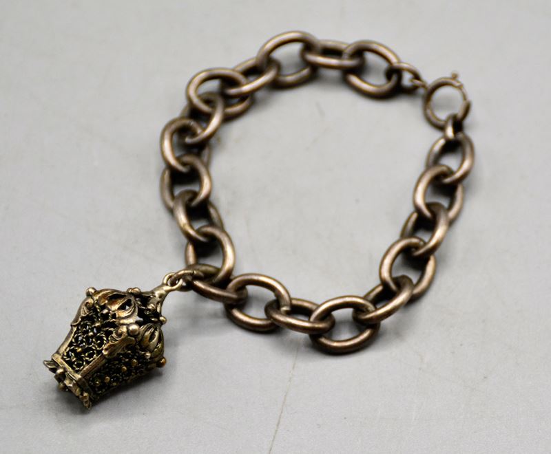 Silberarmband mit Laternen Anhänger, Kette hohl gearbeitet 835 Silber, Anhänger 800 Silber, ca. 19 cm, 20,5 g