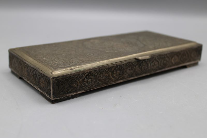 0174-Fein gravierte Silber Schatulle Iran 20 Jh.