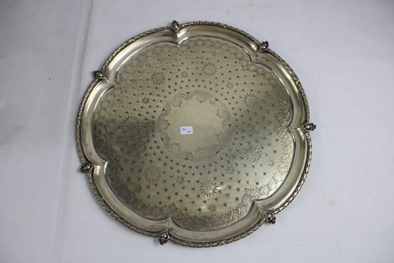 0176-Große Prunkplatte Sternchendekor versilbert Ø ca. 35 cm