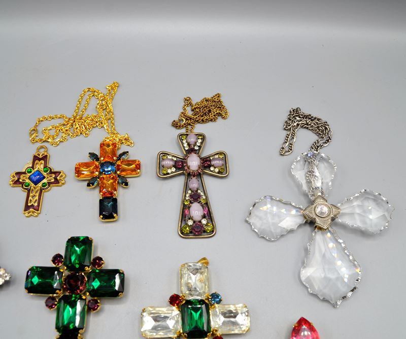 Kreuz Broschen Anhänger Glas Kristall farbige Steine Konvolut 9 St.