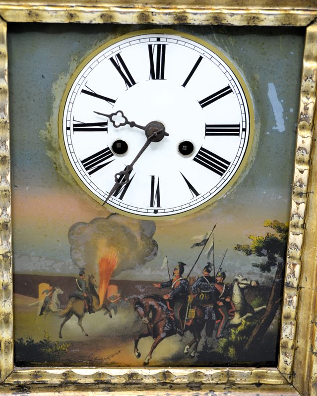 0181-Bilderuhr Rahmenuhr Ulanen Schlacht 19 Jh.