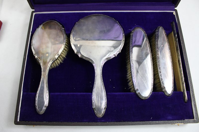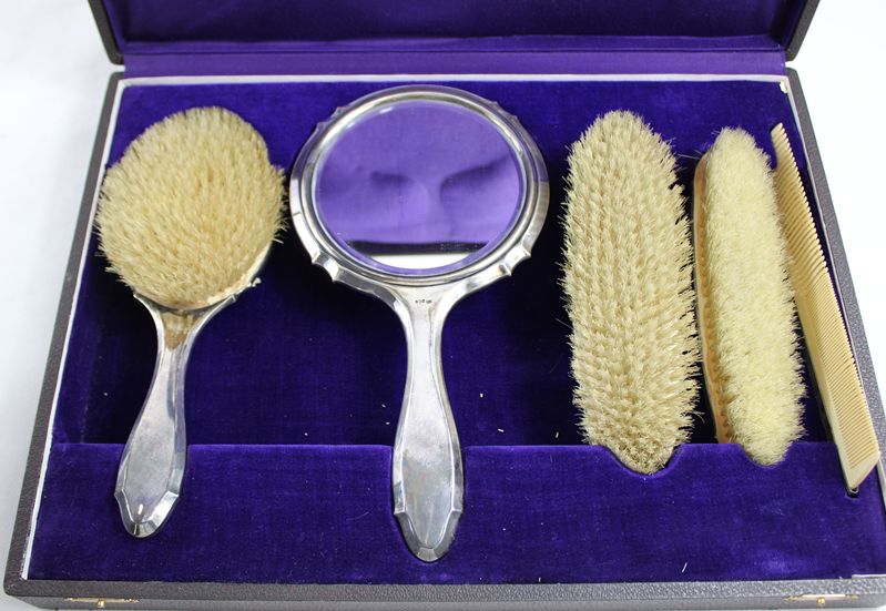 0181-J. B. Haag Juwelier München Frisiergarnitur Toilettengarnitur Silber um 1900