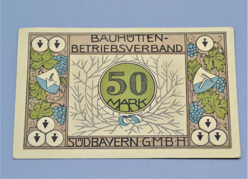 München 50 Mark Sozialisierungs-Beitragsmarke Bauhütten-Betriebsverband, Notgeld Papiergeld, selten