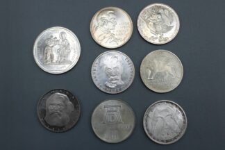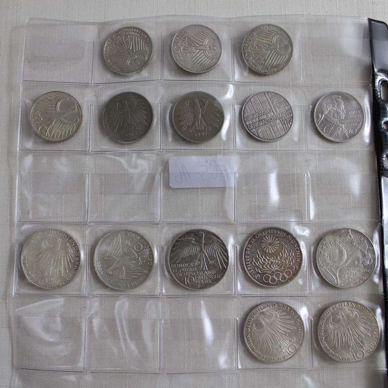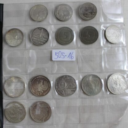 darunter 5 x 5 DM Gedenkmünzen Silber, 3 x 5 DM (darunter 1 Silberadler), 7 x 10 DM Silber