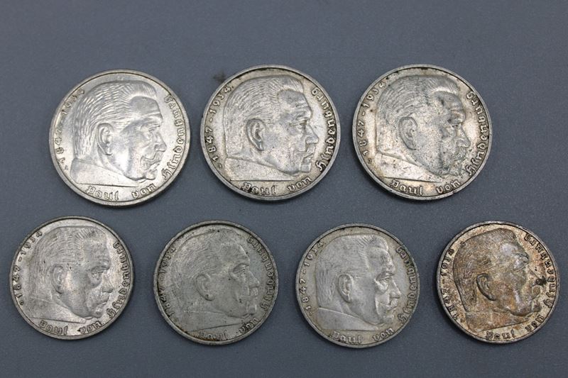 5 Reichsmark u. 2 Reichsmark Hindenburg Silbermünzen