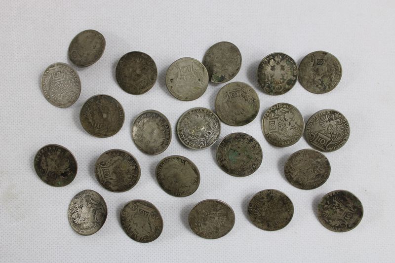 0190-Trachtenknöpfe Münzknöpfe Silber 10 Kreuzer Konvolut 23 St.