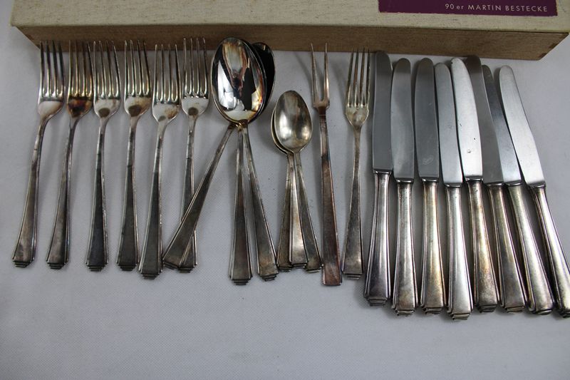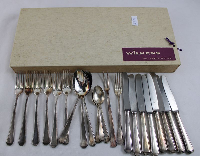 überwiegend 90er Versilberung, Löffel Gabeln ca. 413 g, Messer ca. 521 g