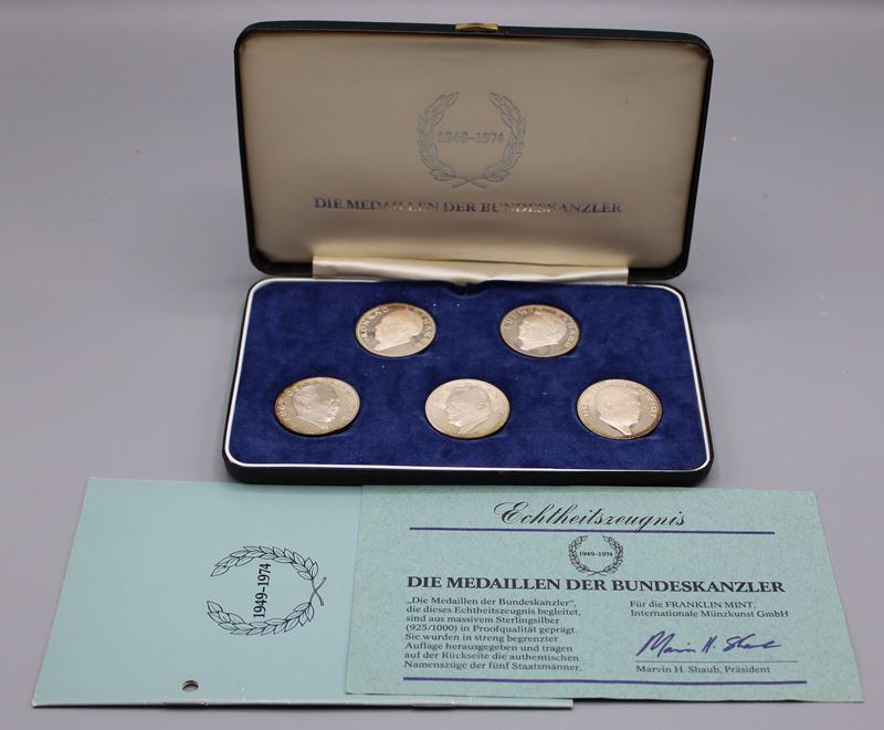 Die Medaillen der Bundeskanzler 1949-1974 Silber 925 6 St.