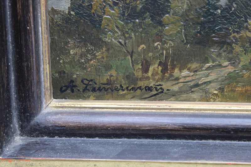 Öl auf Platte, links unten signiert "A. Zimmermann", ca. 27 x 22 cm, Rahmen mit Abplatzer