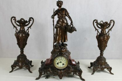 Figürliche Kaminuhr mit Beistellern Amphoren Frankreich 19 Jh.