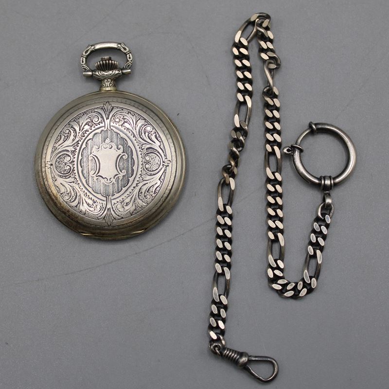 Jrus Silber 830 Savonnette Taschenuhr mit Kette