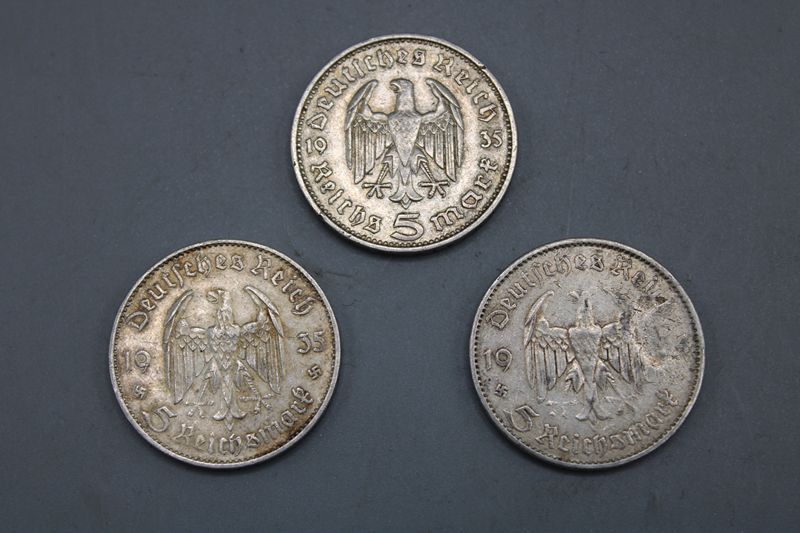 5 Reichsmark Hindenburg/Garnisonkirche Silbermünzen 3 St.