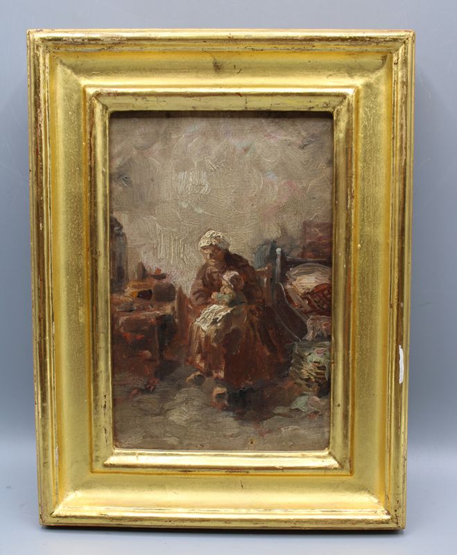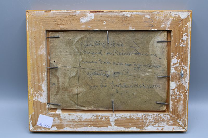 Öl auf Platte, rückseitig zugeschrieben, kleines Loch im Bild unten, ca. 24,5 x 18,5 cm (mit Rahmen), Vergoldung stellenweise berieben