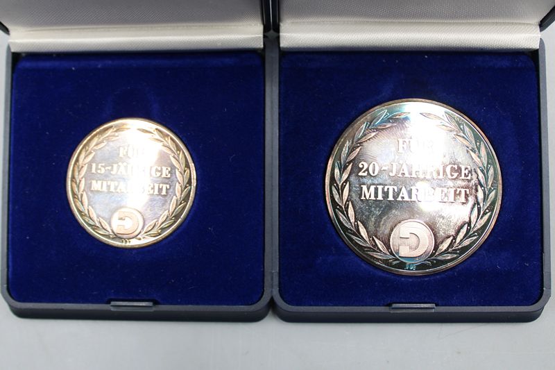 für 15 u. 20 jährige Mitarbeit, Silber 999, zus. 50,2 g