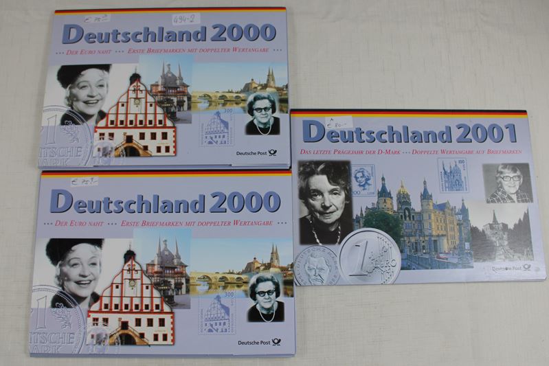 darunter 2000 F, 2000 J, 2000 D, 2001 A, dazu noch erste Briefmarken mit doppelter Wertangabe