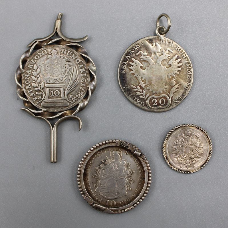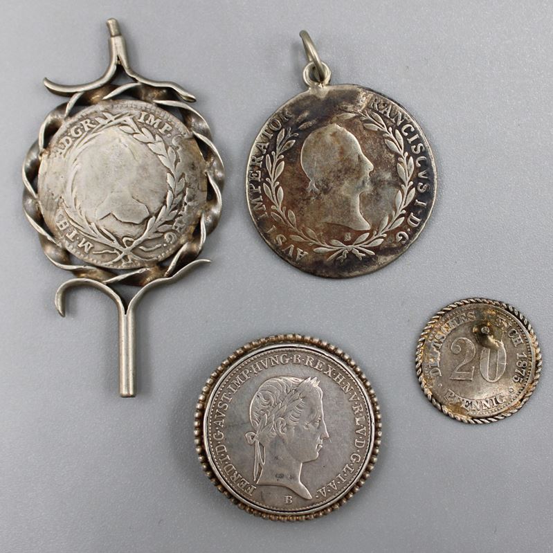 Münzanhänger Taschenuhrschlüssel Brosche Konvolut