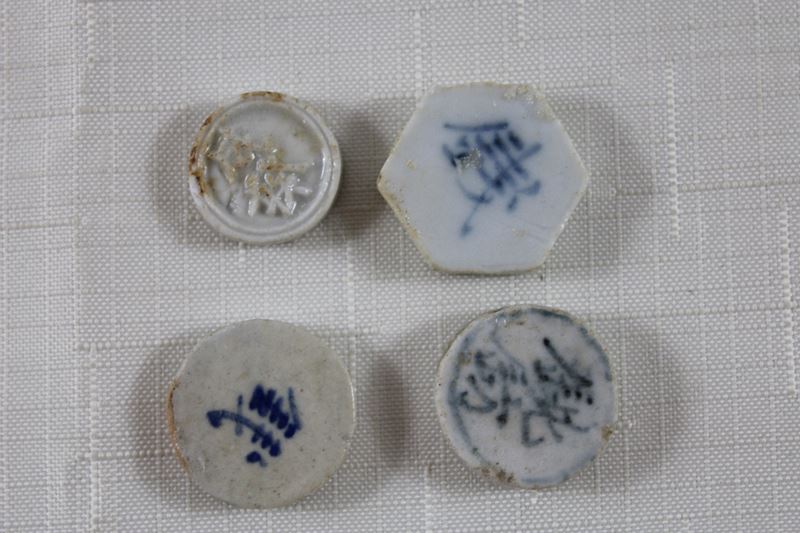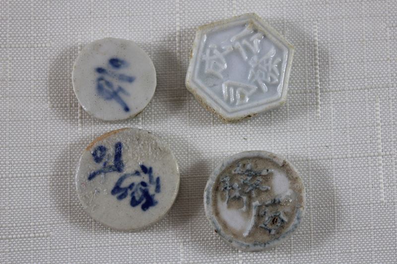 0226-Porzellanmünzen Spielsteine Token Thailand China 19 Jh. 4 St.