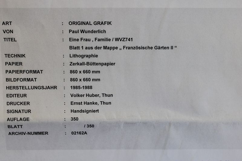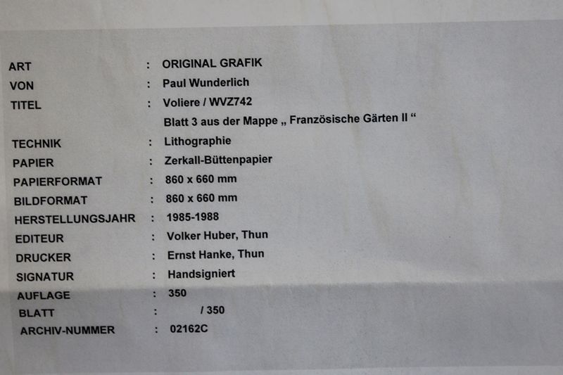 0228-Paul Wunderlich (1927-2010) 3 große Lithographien Blatt 1-3 aus der Mappe “Französische Gärten II”