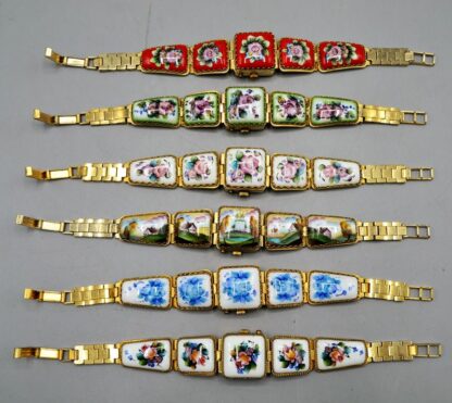 0228-Yanka Uhren Russland Emaille handbemalt Konvolut 6 St.