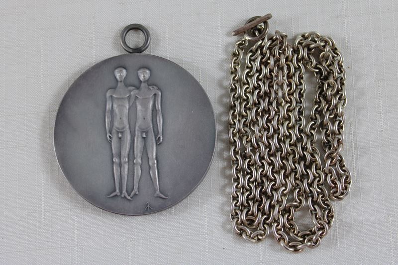 nicht offiziell verliehen da keine Randbeschriftung, wohl Schaustück aus Überschussproduktion, mit Öse zum Einschrauben und Kette, 151,6 g (mit Öse), Ø 6,6 cm