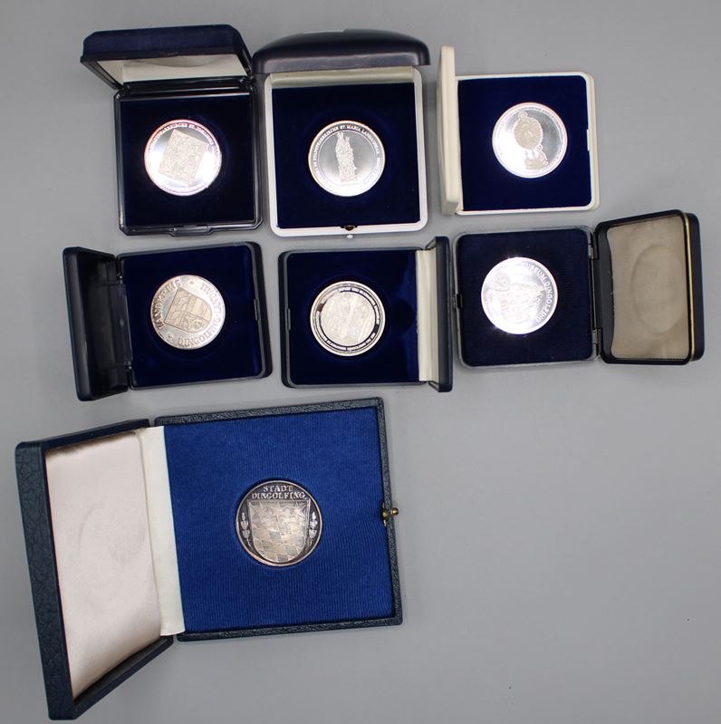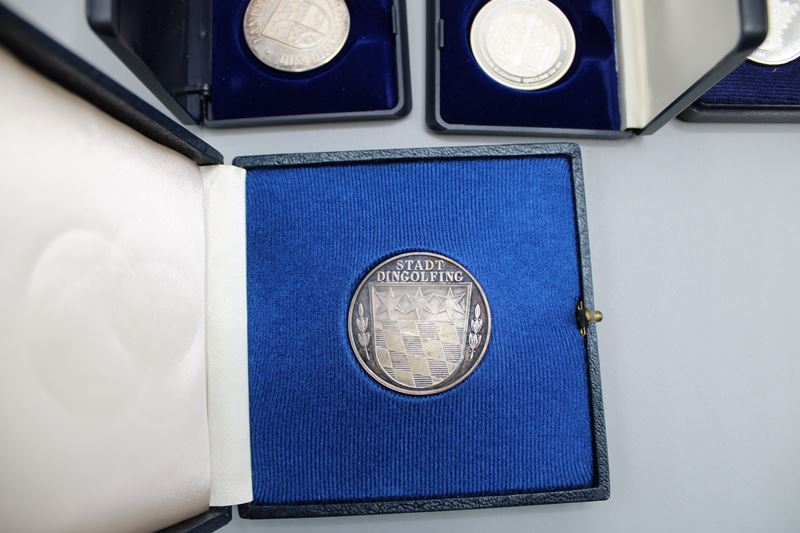 alle mit Bezug zur Stadt Dingolfing, 999 oder 1000 Feinsilber, zus. ca. 115 g