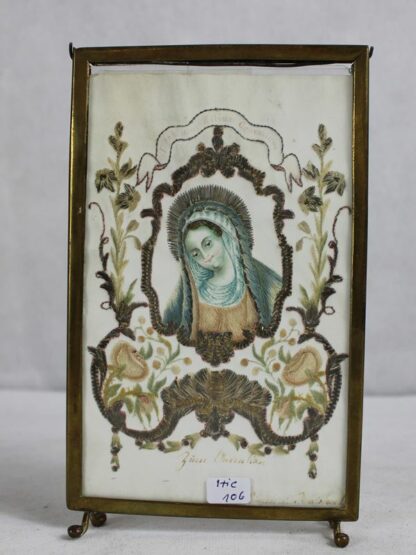 0233-Madonna mit geneigten Haupt Ursulinen Landshut feines Stickbild 19 Jh.