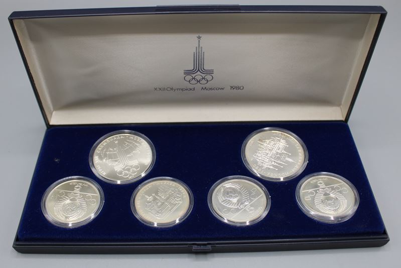 2 x 10 Rubel, 4 x 5 Rubel, 900er Silber, zus. ca. 133 g