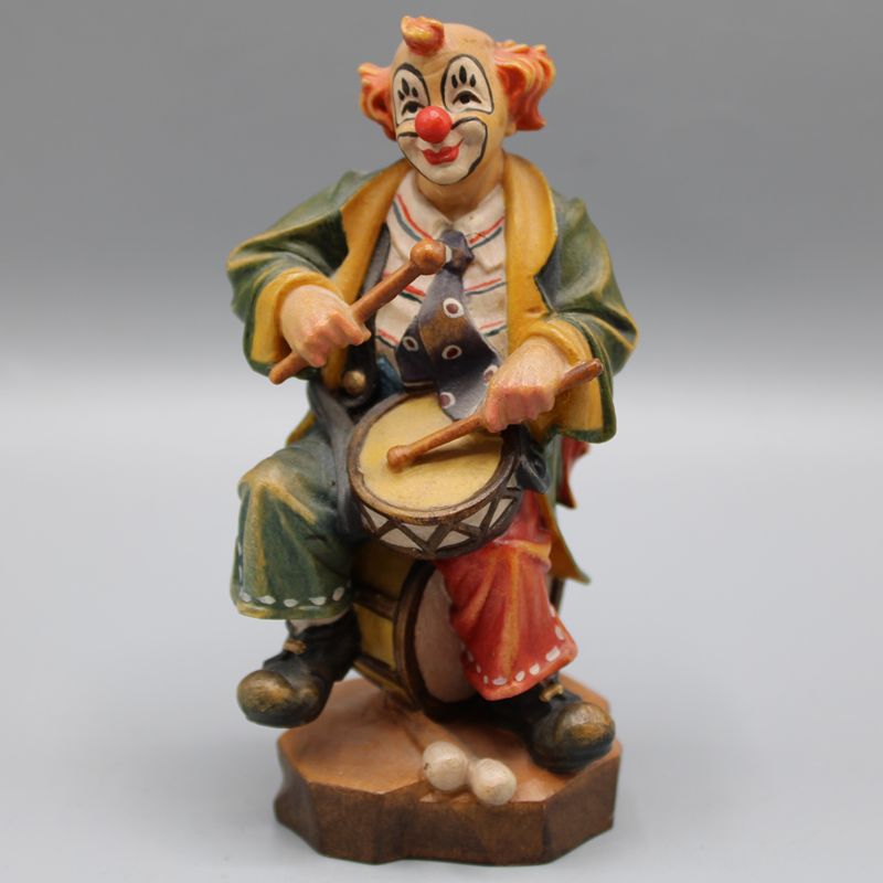 Clown mit Trommel Schnitzfigur ca. 12 cm